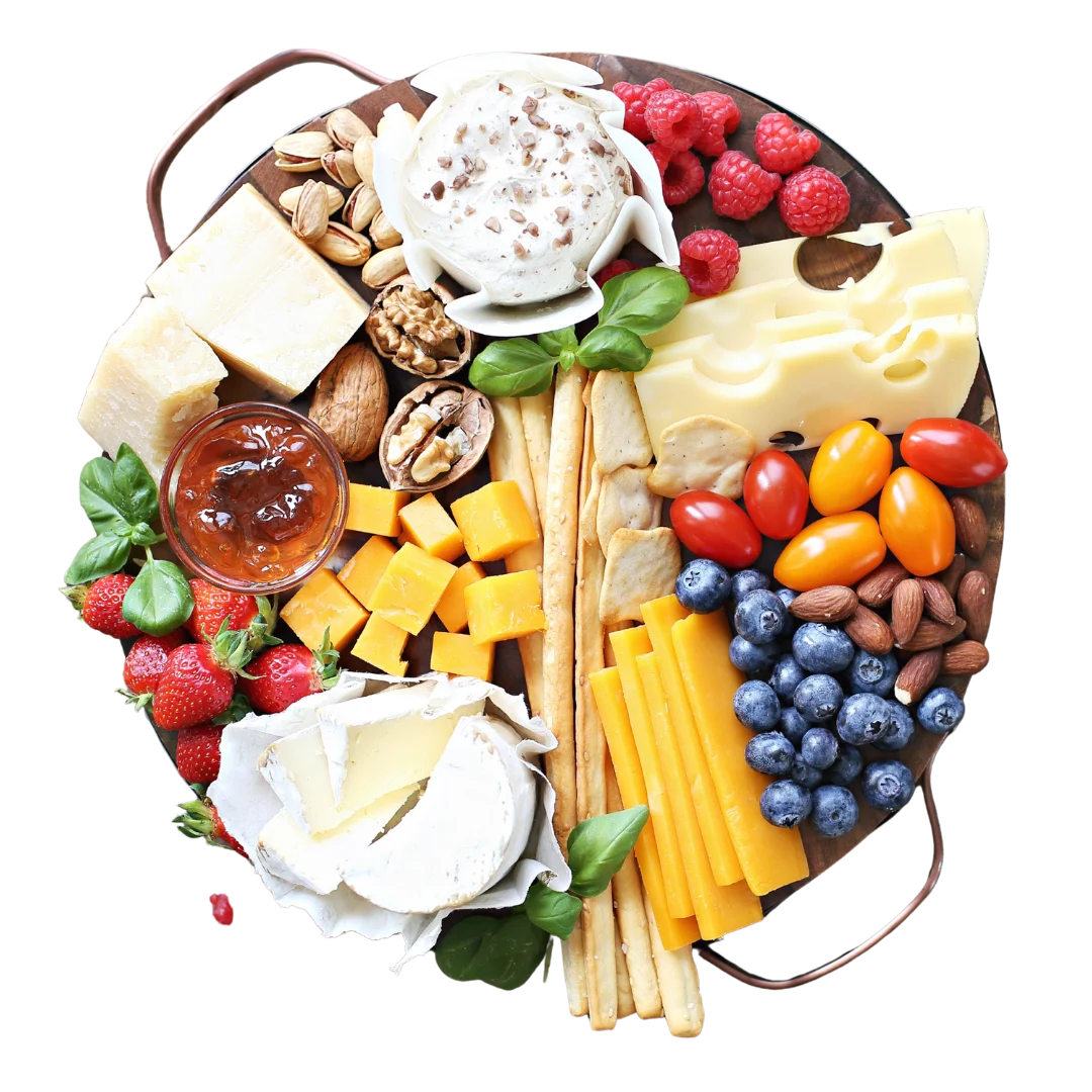 הפלטה כוללת מבחר גבינות איכותיות, ירקות פריכים, מטבלים עשירים, ו־מתוקים מפנקים – כולם נבחרו בקפידה כדי לייצר חוויית אירוח מושלמת, מלאה באיזון טעמים, צבעים ומרקמים.